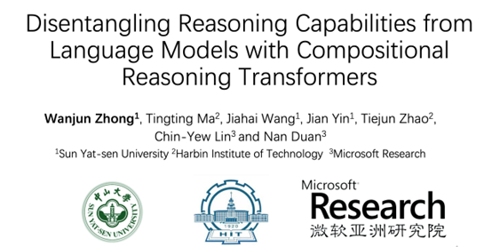 实验室2018级博士研究生钟宛君的论文“Disentangling Reasoning Capabilities from Language Models with Compositional Reasoning Transformers”被接收,并在线上进行报告。本论文受到国家自然科学基金、广东省自然科学基金等项目资助和广东省大数据分析与处理重点实验室的支持。