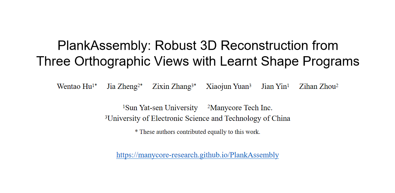 实验室2021级硕士研究生胡文涛的论文“PlankAssembly: Robust 3D Reconstruction from Three Orthographic Views with Learnt Shape Programs”被接收。