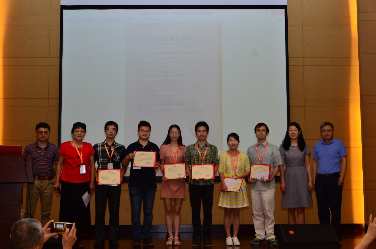 最后,由学会常务理事朝红阳教授宣布2017年广东省高性能计算青年优秀论文评选获奖名单和广东省高性能计算学会首次设立的开放基金评审结果。由许跃生理事长、卢宇彤副理事长、陆遥副理事长为优秀论文获奖者颁奖。
