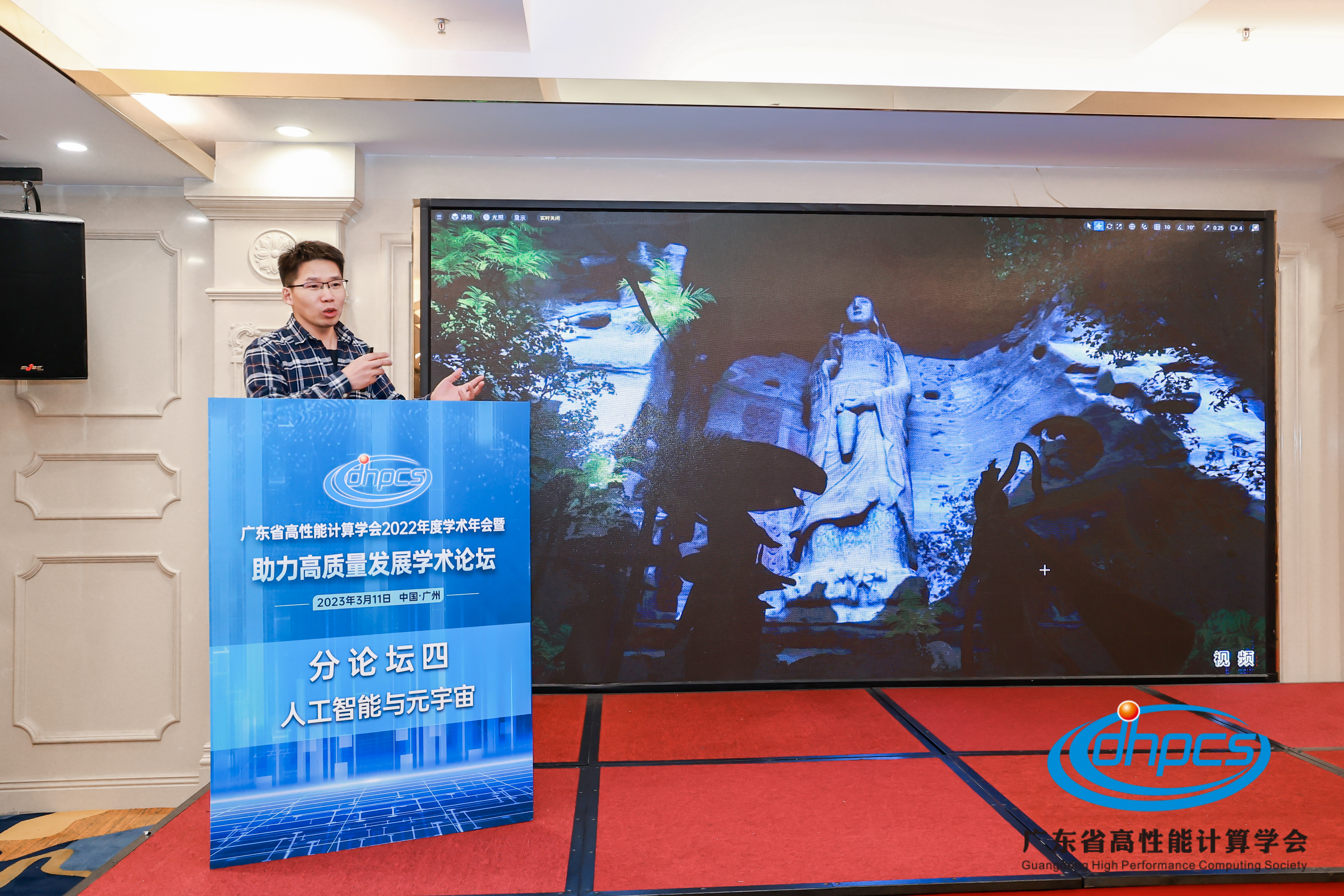 在分论坛“人工智能与元宇宙”上,402永利集团官网永利集团3044官网副院长郑伟诗教授作了题为“行人重识别中的难点问题探讨”的学术报告,探讨了影响行人重识别应用的瓶颈问题以及在换装、跨光照模态、跨分辨率、弱监督等方面的最新科研成果。中国高校虚拟现实产学研联盟执行秘书长、北京电影学院刘跃军副教授作了题为“在元宇宙中合体的电影与游戏”的学术报告,介绍了元宇宙在特色电影游戏产品开发中的广阔前景。教育部长江学者,国家超级计算长沙中心副主任彭绍亮教授作了题为“数字经济时代下的元宇宙Web 3.0技术应用”的学术报告,介绍了国家超算长沙中心元宇宙“数字疗法”软件和电子药等研究成果,为抑郁、睡眠障碍、上网烟酒成瘾等疾病提供了从防控到治疗的全套解决方案。华南师范大学图书馆馆长赵淦森教授作了题为“智库型知识服务及其人工智能核心技术”的学术报告,从科技情报的角度,介绍了人工智能技术的应用,以及利用人工智能技术构建智库型知识服务的具体探索。广东工业大学武继刚教授作了题为“智能交通中的移动协同计算”的学术报告,介绍交通系统的智能计算技术、车联网的移动计算技术、端边云的协同计算技术等研究进展及成果。国家级人才、河北工业大学曹斌教授作了题为“分布式并行演化计算”,探讨了如何将演化计算应用于机器学习,实现参数和结构优化、调整参数和模型结构,进而构造深度演化神经网络的学术构想。在企业报告环节,浪潮 AI&HPC 算力服务总经理唐珂作了题为“智算创新-助力 AI 快速发展”的报告,阐述了浪潮AI算力服务,加速国内AIGC创新步伐、赋力生成式AI创新的解决方案。